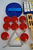 FLT-LB17 Набор перкуссии 17 предметов в чехле (тамбурин, бубен, треугольник, тарелки, 4 пары кастаньет, колокольчики на шнурке, гуиро, тон-блок, колокольчики на кольце, кастаньеты на ручке, маракасы на ручке, колокольчики на ручке, бубенцы -тарелки на ручке, металлофон).  Fleet