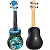 Яркий и насыщенный звук достигается благодаря особенностям конструкции - корпус укулеле сделан из технологичного композитного материала и имеет особую полукруглую форму, а резонирующая верхняя дека сделана из древесины.