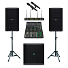 Готовый звукоусилительный комплект на базе оборудования MACKIE: две активные акустические системы MACKIE THUMP212, сабвуфер THUMP 115S, микшерный пульт MACKIE ProFX12v3+ и беспроводная микрофонная система ROCKDALE PRO Stage 220 BK Vocal. В набор также входят напольные стойки и комплект коммутационных кабелей. Подходит для стационарных инсталляций и выездных мероприятий в барах, ресторанах, караоке-клубах, на репетиционных базах и других площадках, где необходим высококачественный звук.